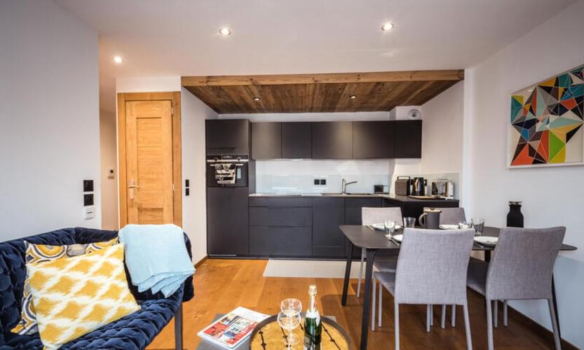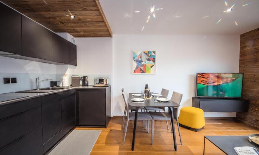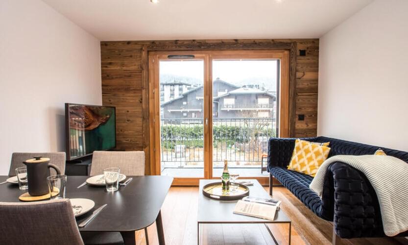 Bell'appartamento nuovo di 35m², classificato 3 stelle, per 2 persone, situato al 1° piano senza ascensore di una nuova e tranquilla residenza (Androsace du Lyret), situata nel centro di Chamonix, nel quartiere del Lyret.