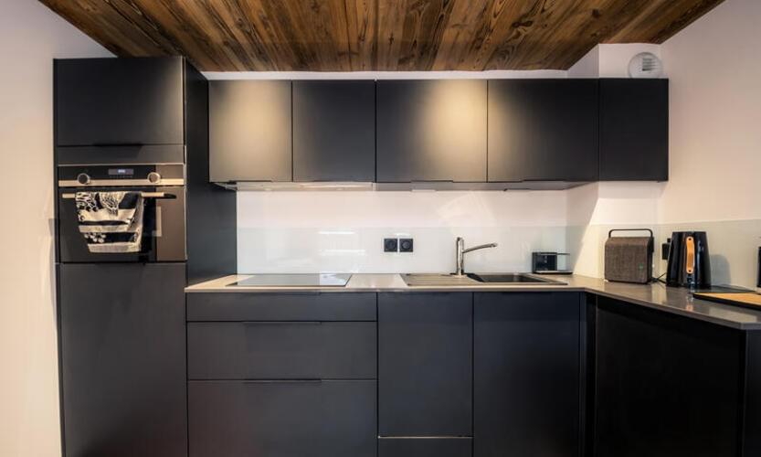 - Cucina attrezzata (piastra a induzione, forno a microonde/foro combinato, frigorifero con congelatore, lavastoviglie, cappa, lavatrice, bollitore, tostapane, Nespresso)