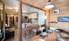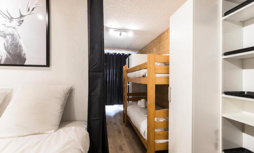 - Uno spazio montagna con letti a castello, separato dal soggiorno da una tenda